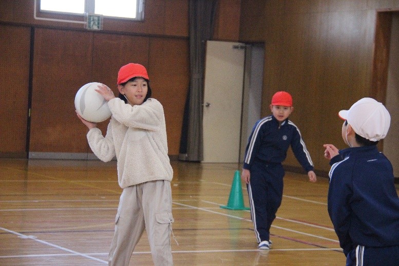 4年西組は、体育の授業で「フットホッケー」の学習を行いました。「空いたスペースを活かした攻め方を練習しよう」という学習課題のもと、チームで話し合いながら練習をしました。敵チームを意識した攻め方を学び、ゲームで活かそうとする姿が見られました。