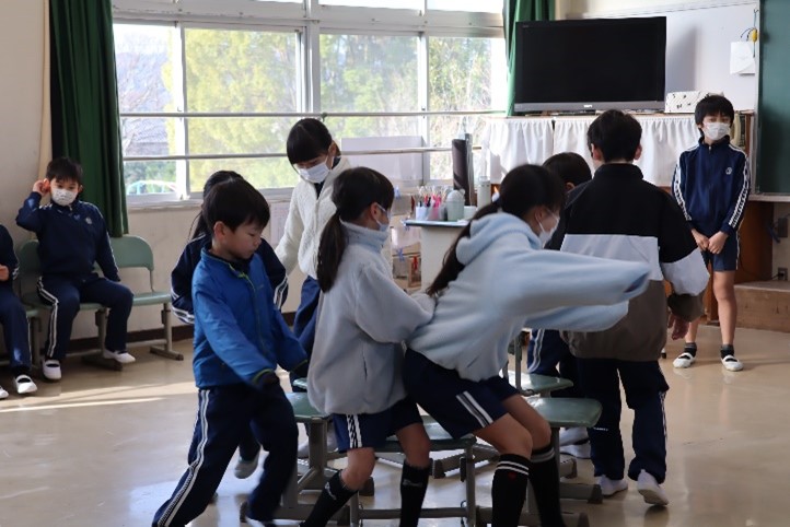 2026年3月9日 16時49分本日、みどりのチームによる「なかよしあそび」が行われました。5年生が考えた「伝言ゲーム」や「新聞サバイバル」、「目かくしかくれんぼ」、「リレー遊び」などを、みどりのチームごとに体育館や特別教室、普通教室に分かれて遊びました。短い時間でしたが、この「なかよしあそび」で、みんなの笑顔があふれる「荻谷笑」の一日がスタートしました。