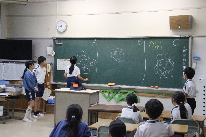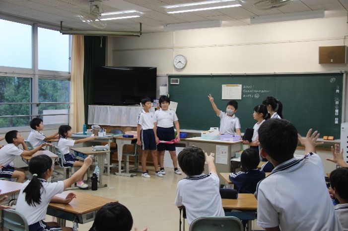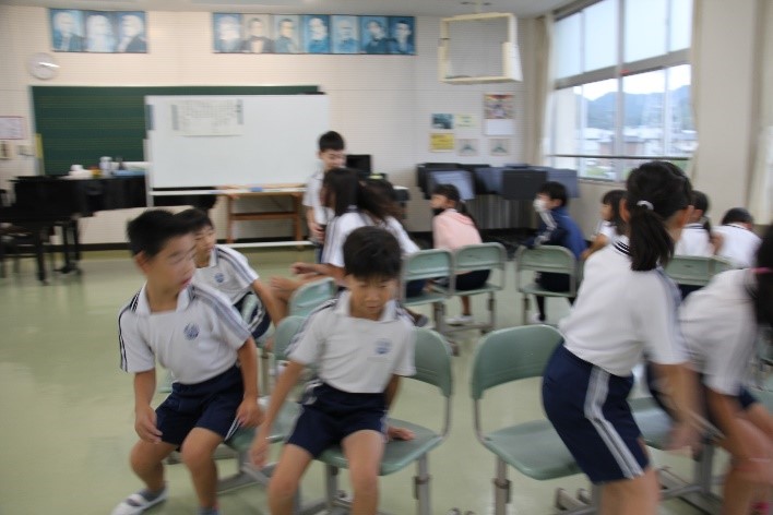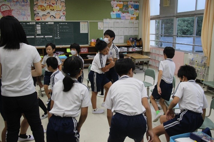 みどりのチームによる「なかよしあそび」では、6年生が考えた「ガムテープかくれんぼ」や「ばくだんゲーム」、「なんでもバスケット」、「かわりおに」などを、みどりのチームごとに体育館や特別教室、教室に分かれて遊びました。短い時間でしたが、このなかよし遊びで、みんなの笑顔があふれる「荻谷笑」が今週もスタートしました。