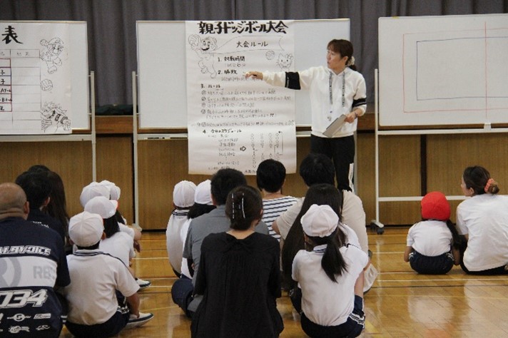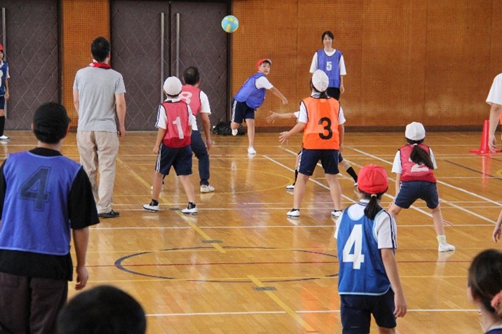 2025年10月1日 16時18分本日、4年生の親子活動が行われました。親子混合でチームを作り、みんなでドッジボールに親しみました。内野と外野で連携して当てるチャンスを作って攻撃する場面や大人が投げたボールをキャッチしたり、当たらないように必死で逃げたりする姿がたくさん見られました。ナイスなプレーが出るとチームや周りから歓声が上がるなど、親子で楽しみながら汗を流しました。