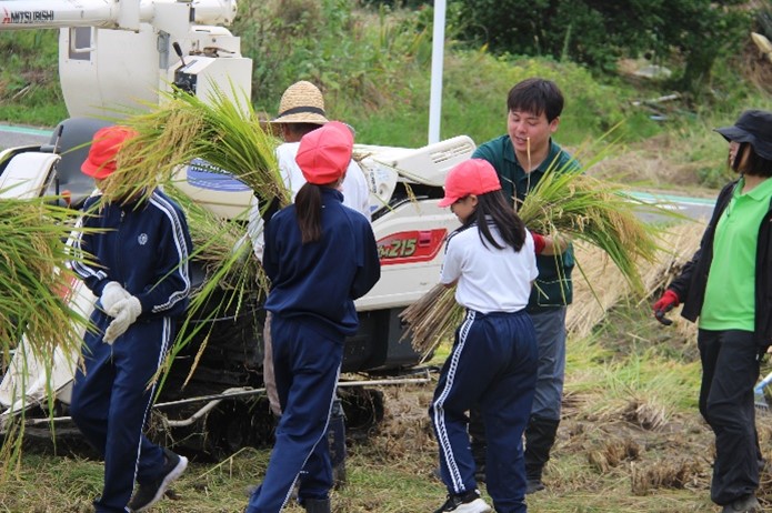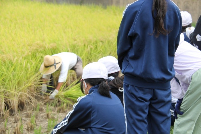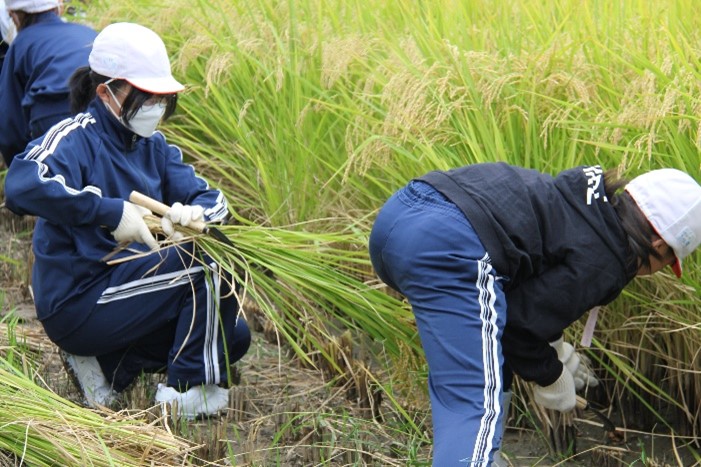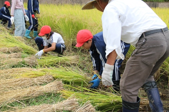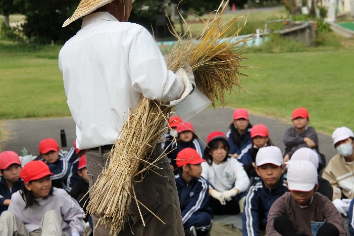 2025年10月3日 17時15分本日、5年生が稲刈りを行いました。米作りをとぼねの学習(総合的な学習)で行っており、5月に田植えをしてから、草取りをしながら育ててきました。地域講師の方のご指導を受けて、稲の刈り方を学びました。子どもたちは泥だらけになりながらも一生懸命に刈り取り、貴重な体験をすることができました。その後、講師の方がコンバインで刈り取ってくださり、今年もたくさんの米を収穫することができました。
