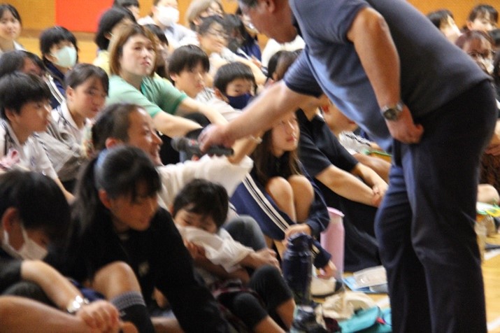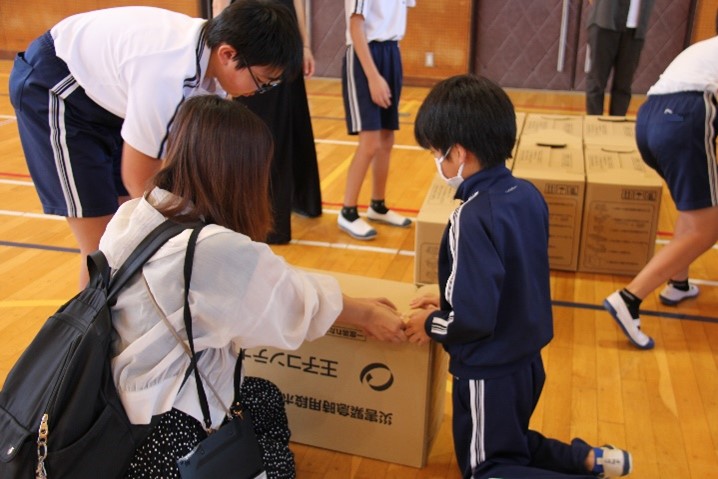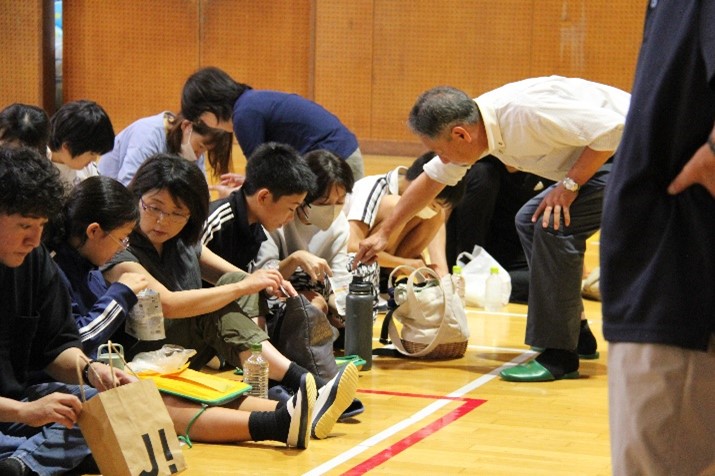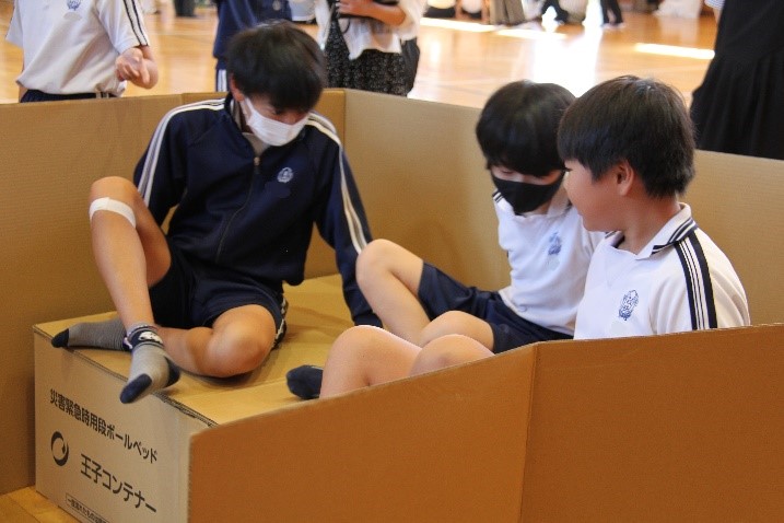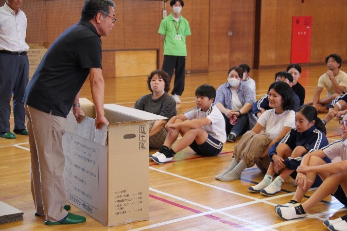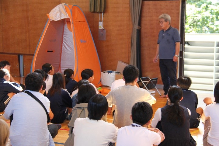 6年生の親子活動では、講師の方をお招きし、「防災意識を高める」と題して、防災についてのお話を聞いたり、非常食の試食をしたりしました。また、簡易ベッドや非常トイレなどにも実際に触れる体験をし、親子で防災についてしっかり学びました。