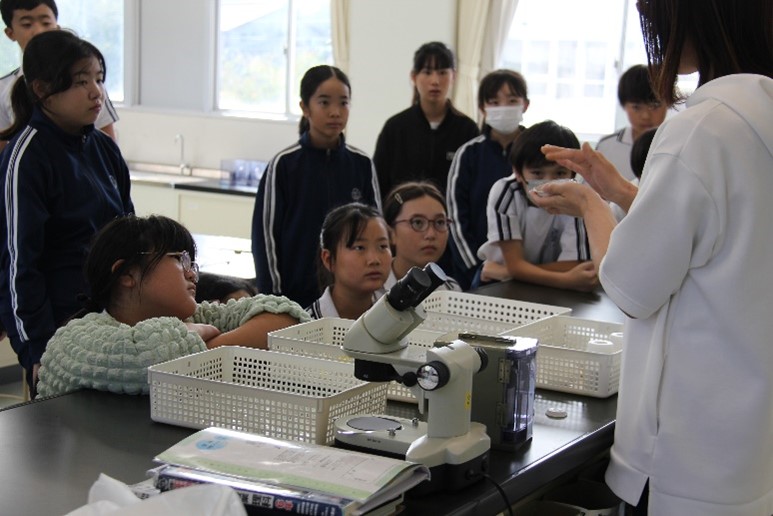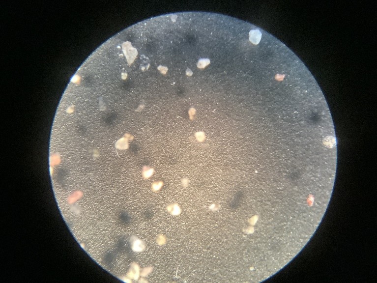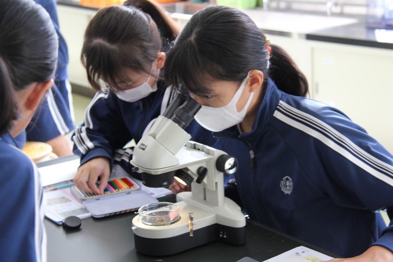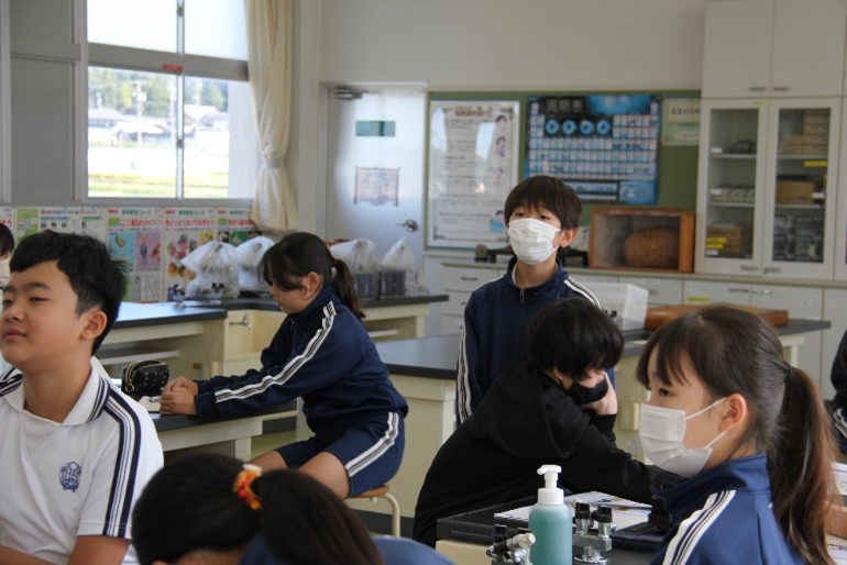6年西組は、理科の「大地のつくり」の授業を行いました。地層を作っている火山灰を双眼実態顕微鏡で観察し、火山灰は粒が角ばっていることやいろいろな石があること、噴火した火山によって様子が違うことを学びました。