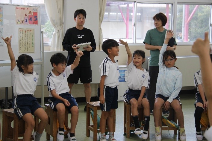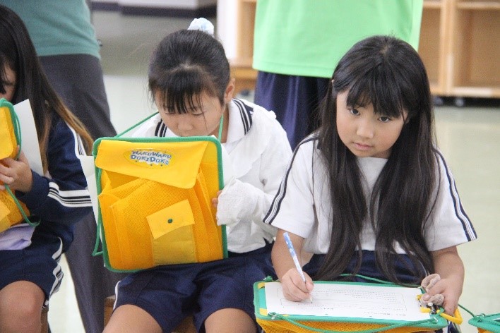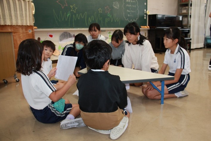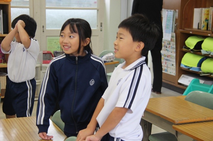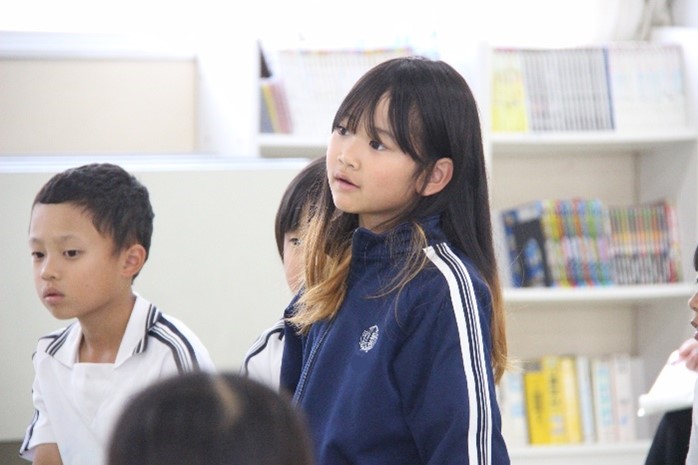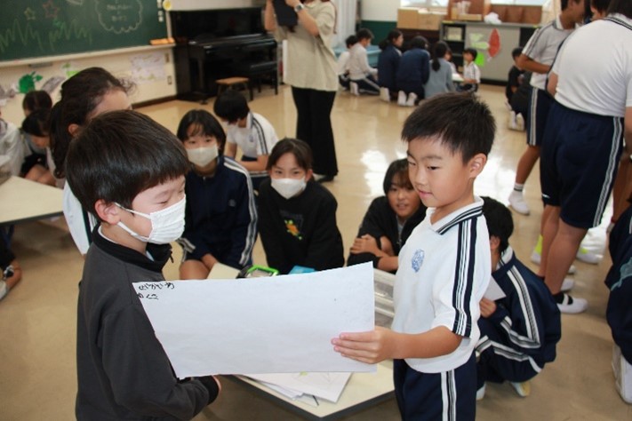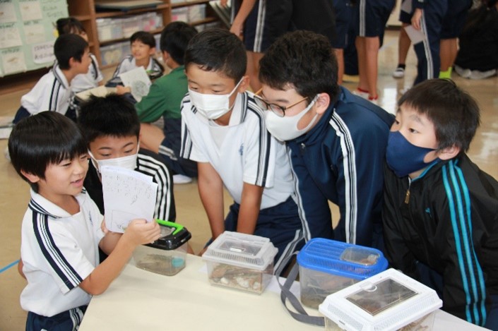 1年西組は、生活科の授業で「あつめよう!いきものの森」の学習を行いました。自分が捕まえた生き物について分かったことを、クイズや絵本などにして、招待した6年生に披露しました。一生懸命に伝えようとする1年生と、それを温かく見守る6年生の姿で、とても微笑ましい時間となりました。