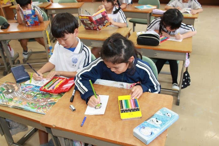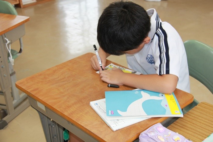 2年西組は、学活の授業で「読書ゆうびんをかこう」の学習を行いました。自分のお気に入りの本を家族や友だちに紹介するために、お気に入りの場面や紹介の文を考え、はがきにかきました。どんな作品ができ上がるか楽しみです。