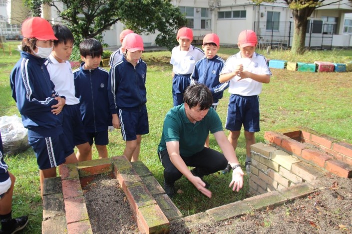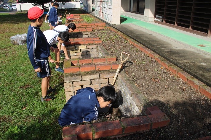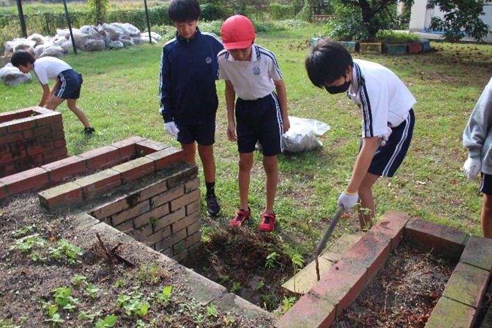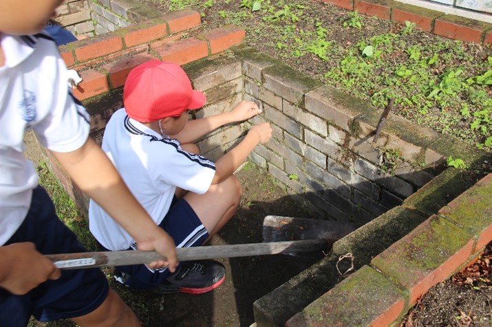 2025年10月14日 14時51分本日、5年生が明日の収穫祭に向けて、焼きイモの準備をしました。焼き芋を焼く炉を掃除したり、イモを洗ったり、大きさで分けたりしました。明日は6年生が炉を使ってイモを焼きます。どんな風に焼き上がるか楽しみです。