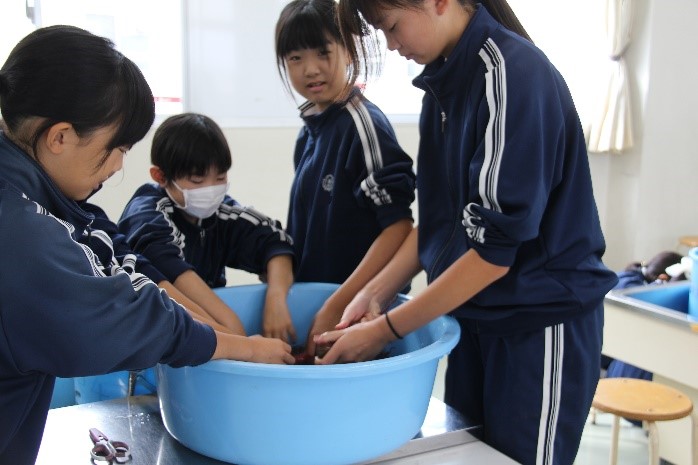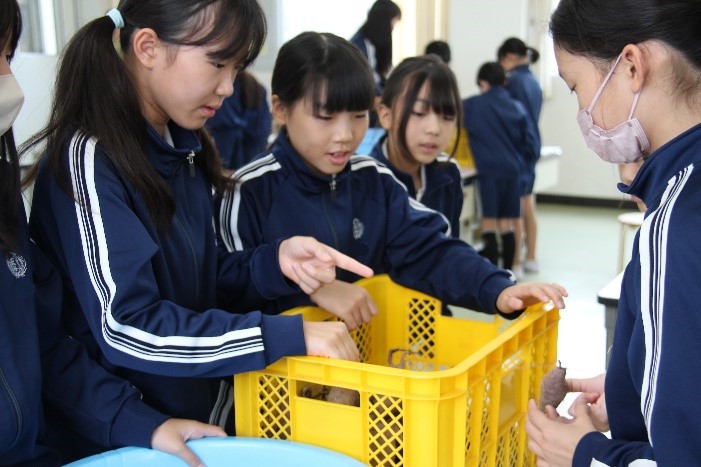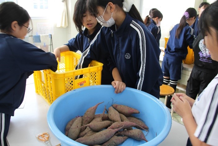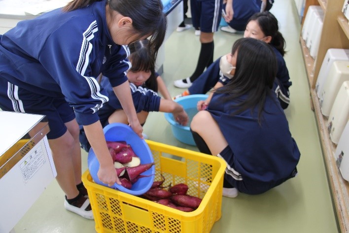 本日、5年生が明日の収穫祭に向けて、焼きイモの準備をしました。焼き芋を焼く炉を掃除したり、イモを洗ったり、大きさで分けたりしました。明日は6年生が炉を使ってイモを焼きます。どんな風に焼き上がるか楽しみです。