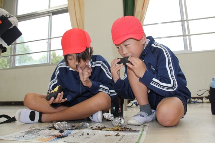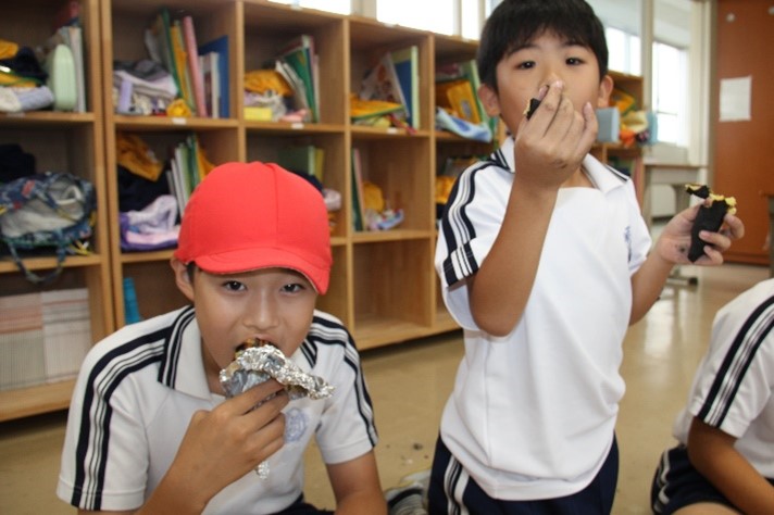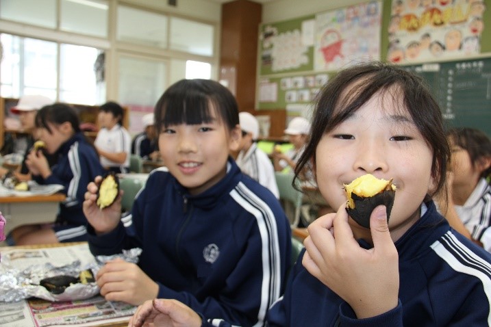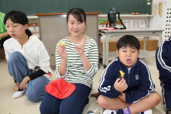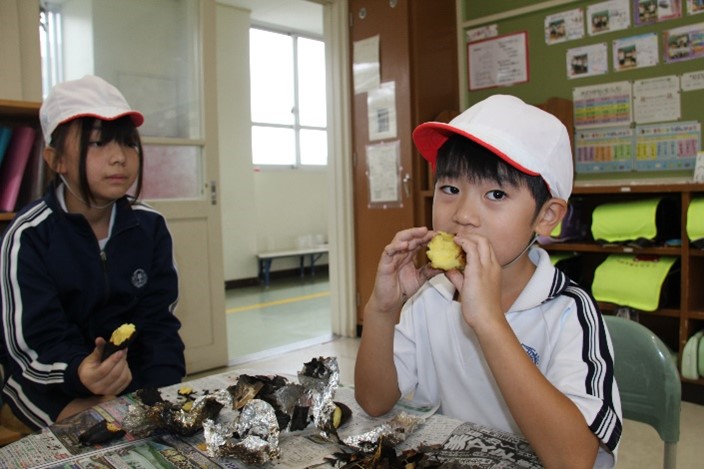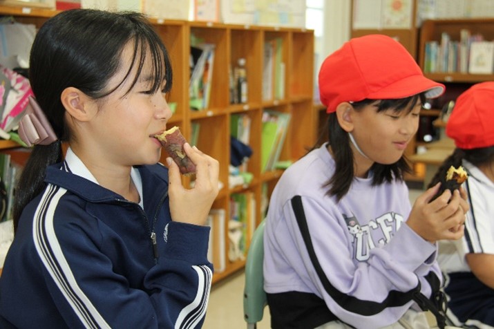 2025年10月15日 17時38分本日、先日収穫したサツマイモを全校で味わう収穫祭が行われました。前日に5年生が洗ってくれたサツマイモを、6年生がグループに分かれて焼きイモにしました。体育館で校長先生や代表児童の話のあと、6年生が焼いてくれたサツマイモをみどりのチームごとに分かれて食べました。しっかり焼かれたイモを、子どもたちは口々に「おいしい。」「ホクホクだあ。」と言いながら食べていました。本日も笑顔あふれる荻谷笑となりました。