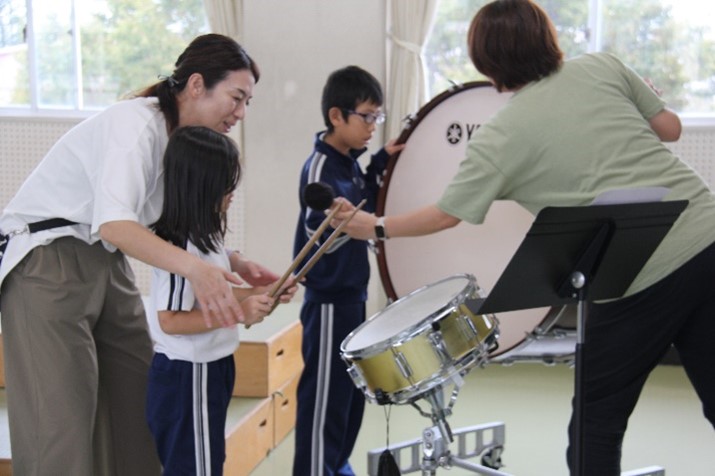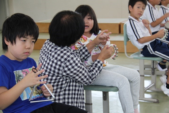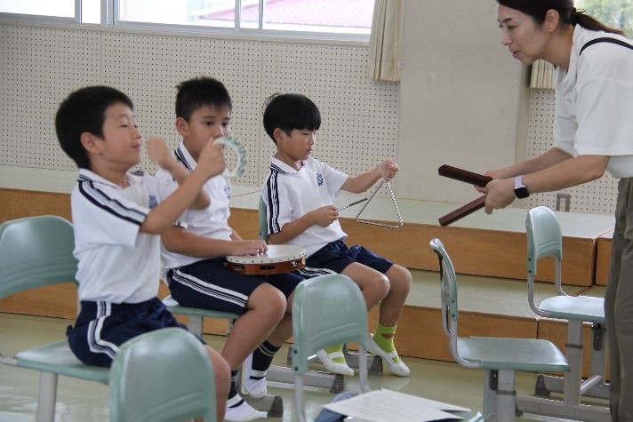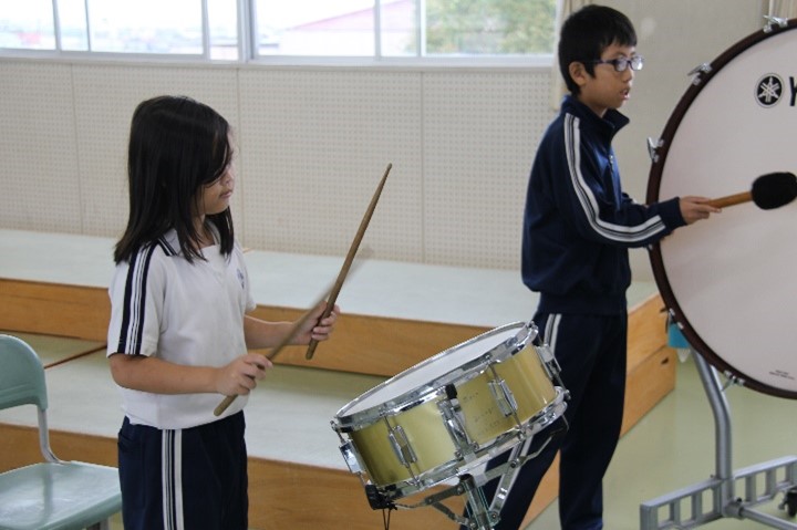 あしの芽学級が音楽の授業で、学習発表会に向けて練習を行いました。今日は、6年生の大太鼓のリズムに合わせて、1・2年生がウッドブロックやトライアングルを打ちました。本番では、キーボードや鍵盤ハーモニカなどの楽器を交えて、となりのトトロの「さんぽ」を演奏します。素敵な演奏になるように、練習をたくさんがんばっていきます。