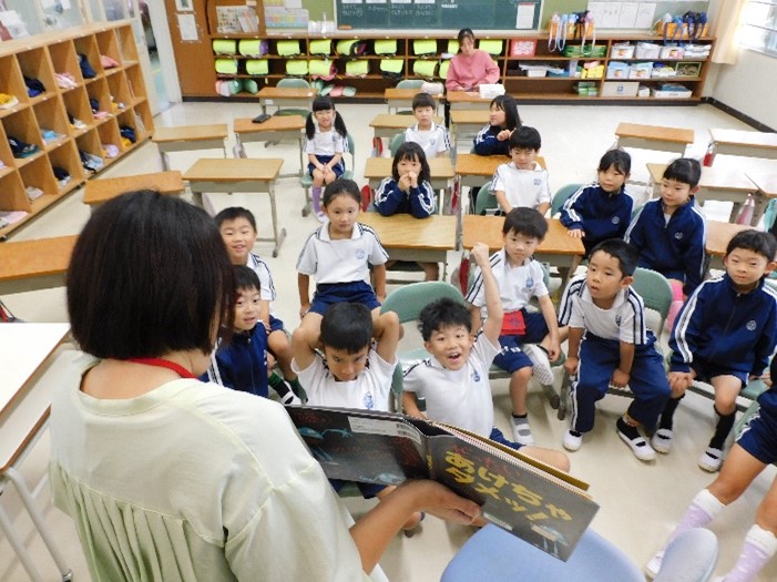 本日、読み聞かせがありました。子どもたちは、いろいろな工夫をしながら本を読んでくださるボランティアの方の読み聞かせに聞き入っていました。秋が少しずつ深まり、涼しさを感じるようになりました。過ごしやすくなった時間を読書に費やすのも良いですね。