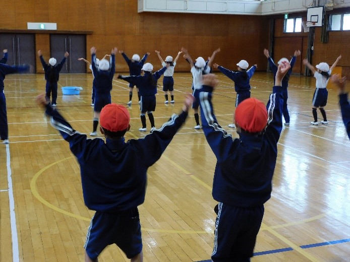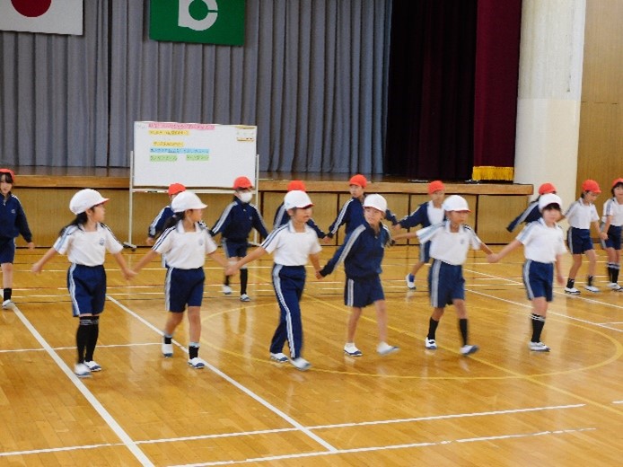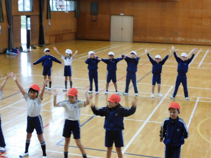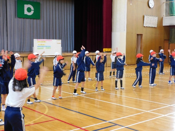 2年生は、体育の授業で「表現あそび」の学習を行いました。「みんなでつくろう、おどろう」の課題のもと、それぞれのグループで分担して考えた「こうたの空へ」のダンスの振り付けを見せ合い、一緒に踊りながら覚えました。今後は、隊形などもふまえて練習を積み重ね、学習発表会にむけて仕上げていきます。