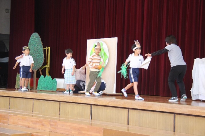 1年生は、学習発表会に向けた練習を行いました。自分たちの発表が会場の方たちにしっかり伝わるように、声の大きさや演技を大きくすることなどを意識しながら練習しました。