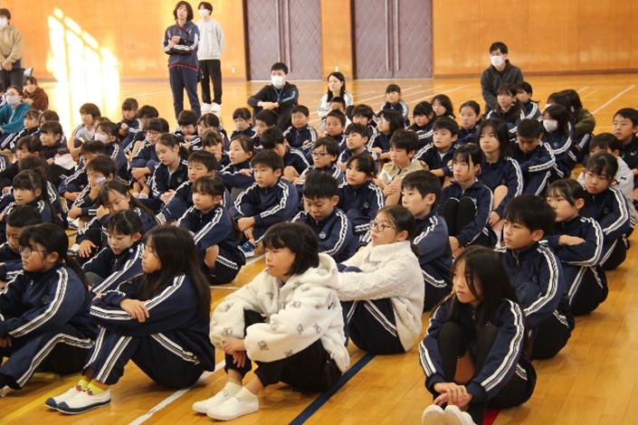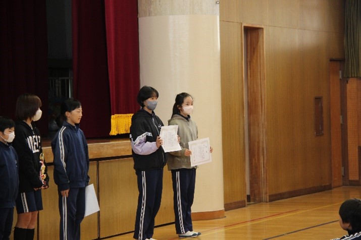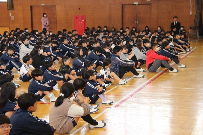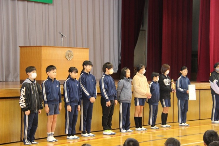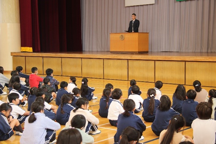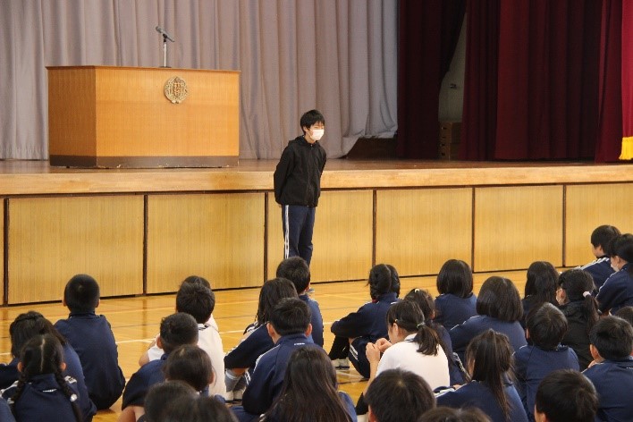 朝会 2025年11月10日 12時53分 本日、朝会が行われました。校長先生から、先日の学習発表会での子どもたちの頑張りによって「収穫のあった学習発表会になった」ことや「2学期も残り1か月となり、実りのある2学期にするために、今後も充実した活動を行ってほしい」ことについてお話がありました。また、「幸田町読書感想画」と「ドッジボール大会」の表彰伝達が行われました。最後に、執行委員会から今月のめあて「読書の秋、たくさん本を読もう」について話がありました。