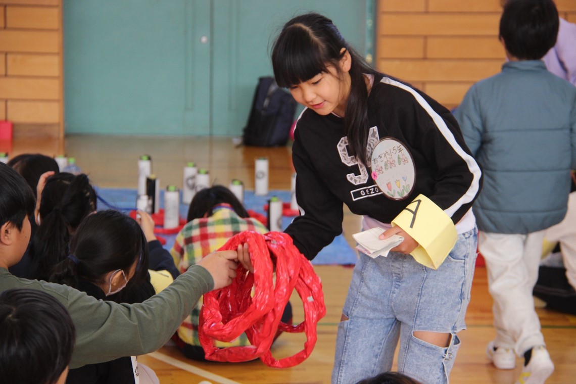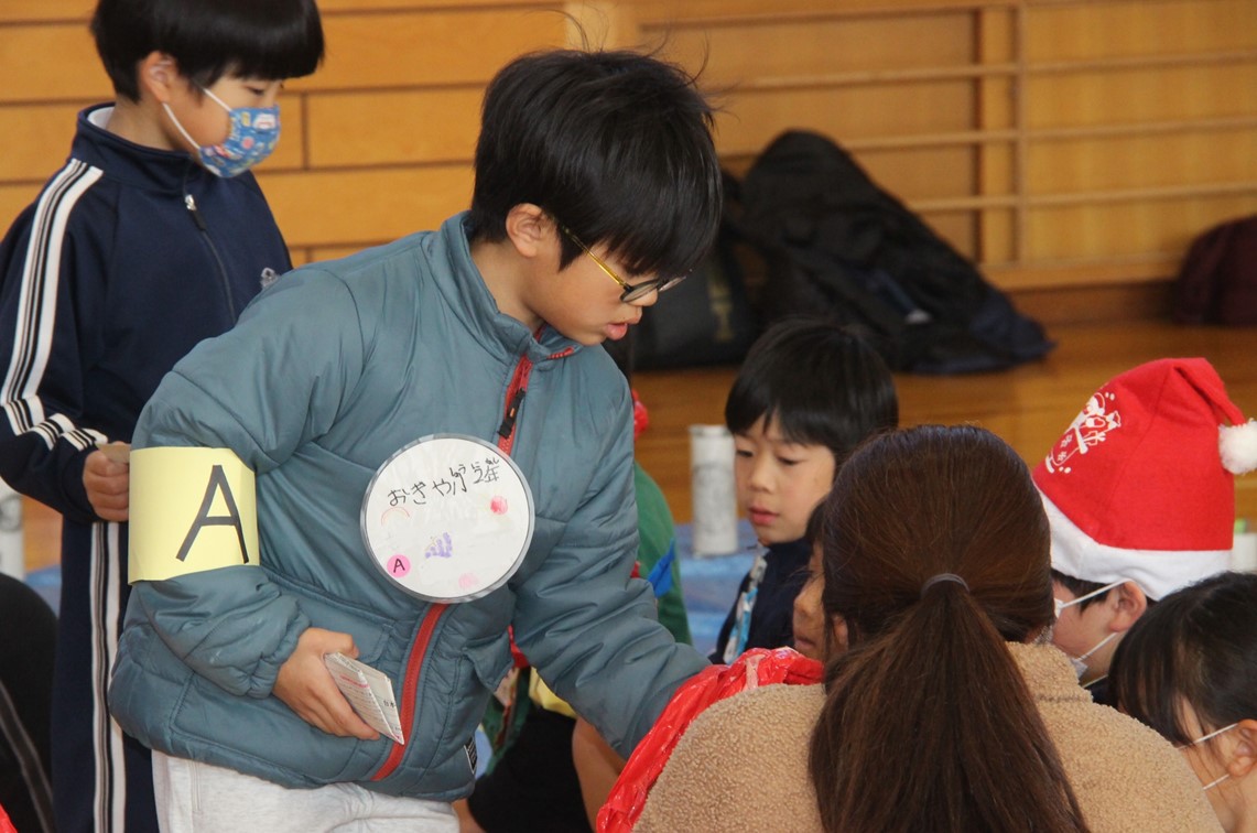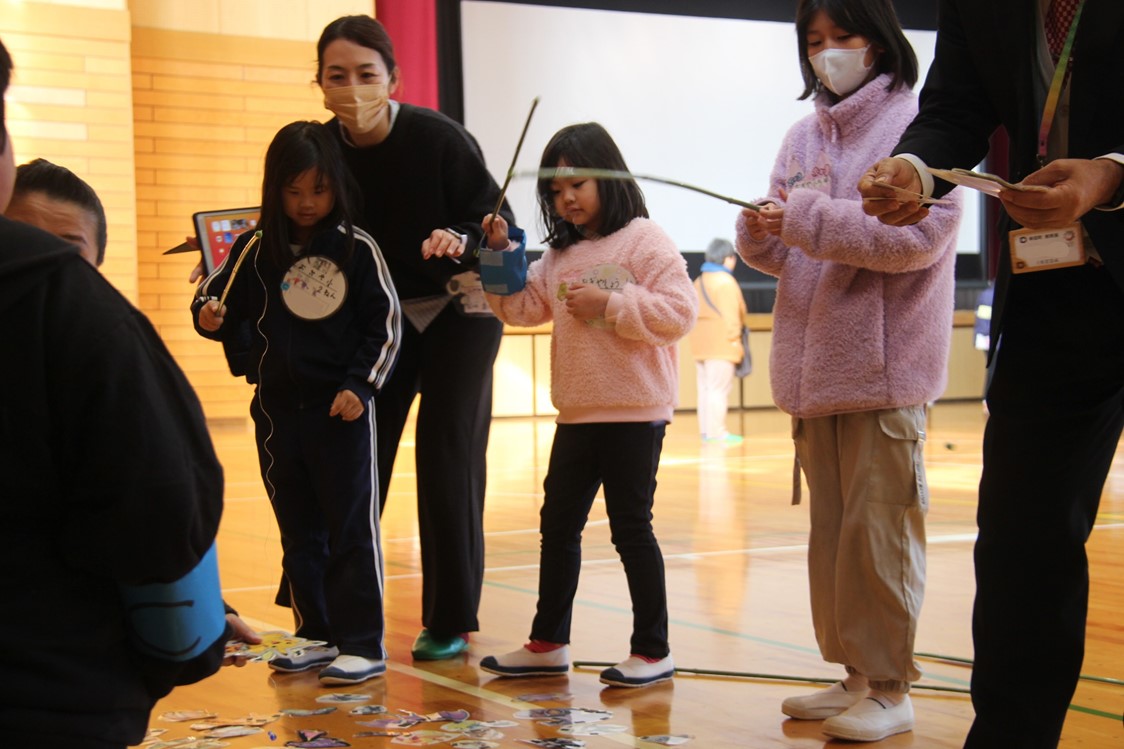 2025年12月10日 12時49分本日、特別支援学級の幸田中学校区交流会が幸田中学校で行われました。王様じゃんけんでみんなと楽しんだ後、グループに分かれて各学校の子たちが準備したゲームで楽しみました。荻谷小学校の出し物は、ジブリ輪投げでした。他校の子にルール説明をしました。輪が入ったときは、「おめでとう。」と、入らなかった時は、「惜しいね。」などと他校の子に声をかける様子がみられました。多くの子どもたちと交流ができて素敵な1日になりました。
