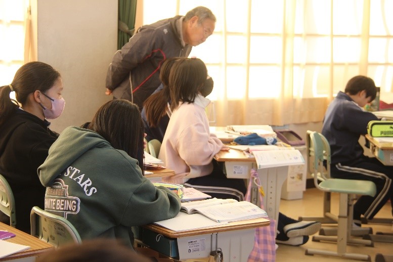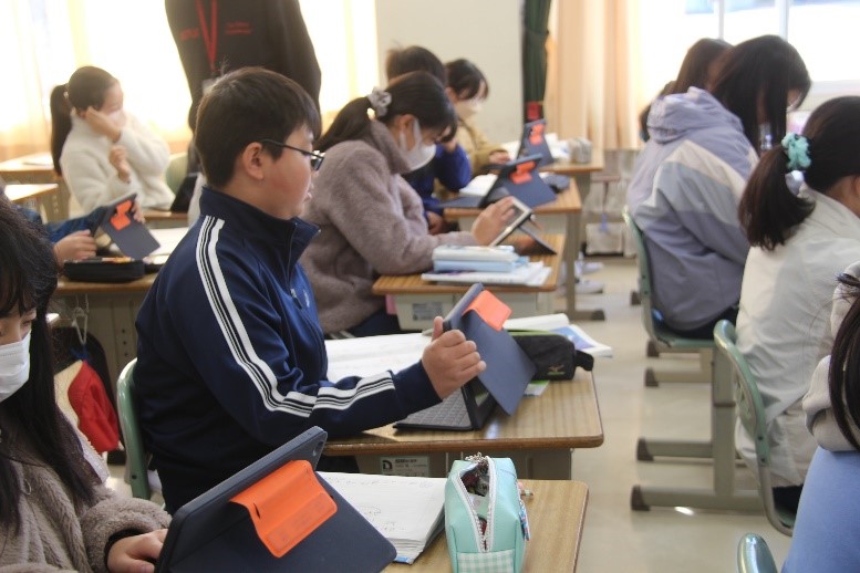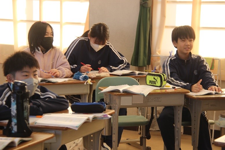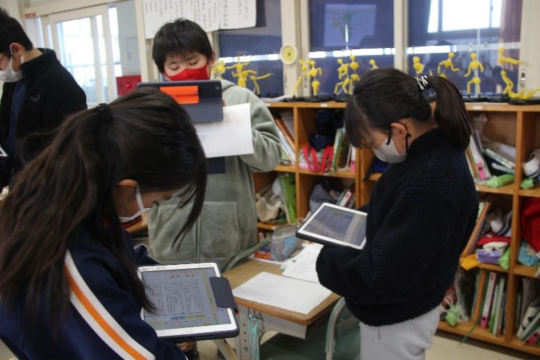 6年西組は、国語の「心に残った、この一文」の授業を行いました。学習した「海の命」の中から、心に残った一文とその理由について話し合い、それをタブレットを使ってまとめました。