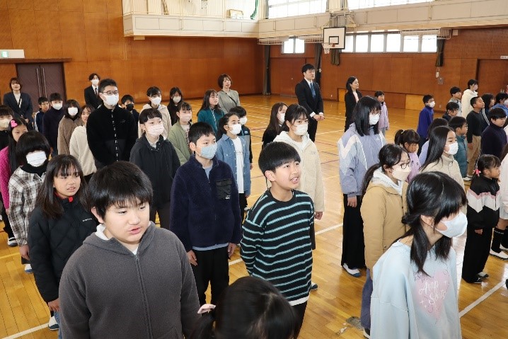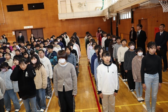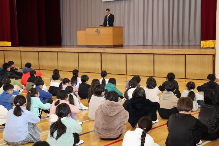 始業式では、校長先生から、「目標や希望をもち、その達成に向けて努力できる3学期にしてほしいこと」「3学期は次の学年に向けた準備の学期なので、1年のまとめをするだけでなく、次の学年に向けた準備も進めてほしいこと」などのお話がありました。