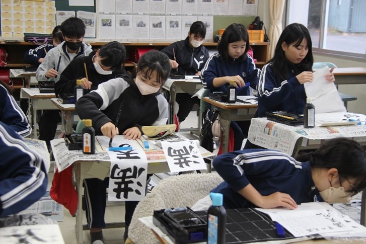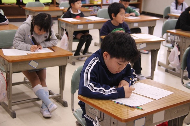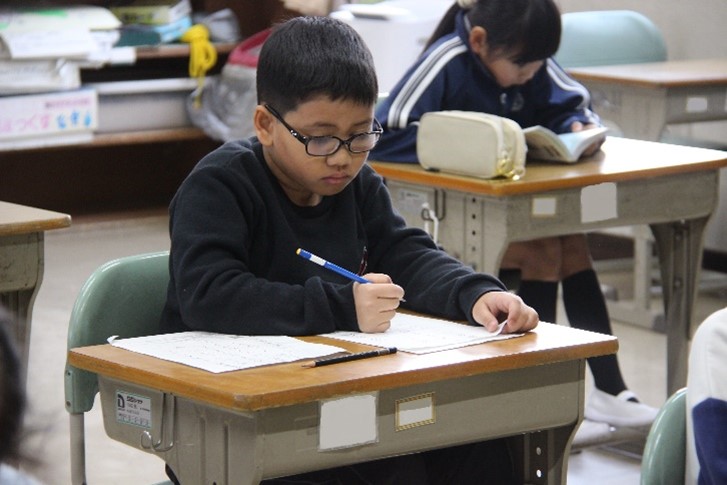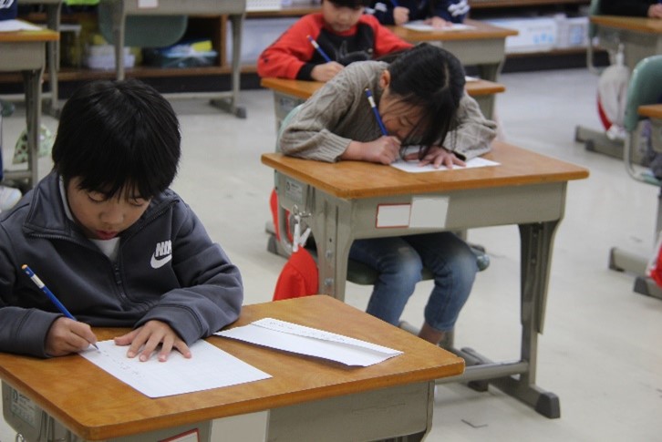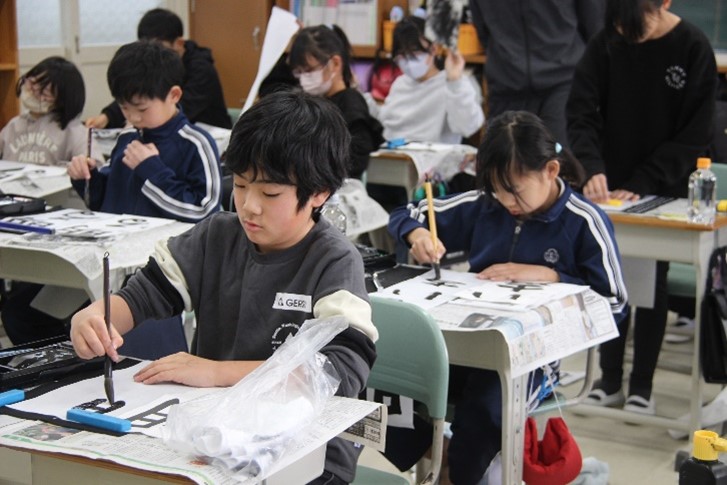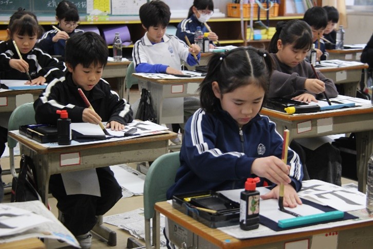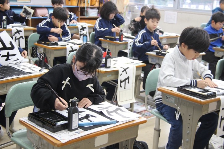 本日1、2時間目に書き初め大会が行われました。どの教室も静寂につつまれ、子どもたちは、上手に字を書こうと何度も手本を確認しながら、集中して書くことができました。2学期末から冬休みにかけて練習してきた成果を発揮することができたと思います。