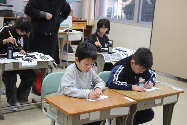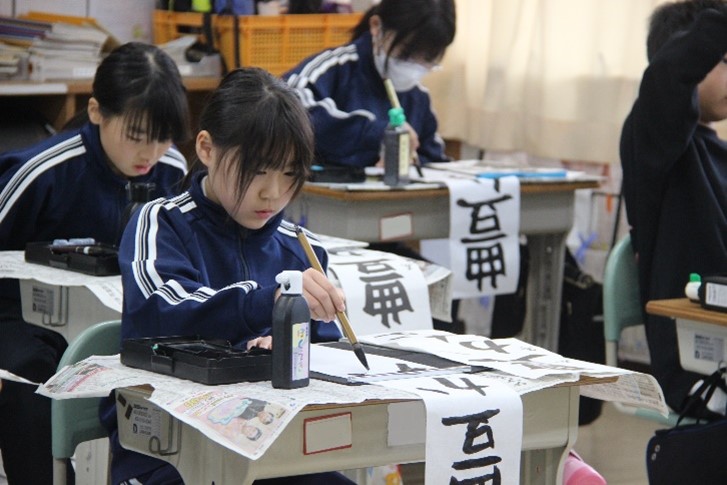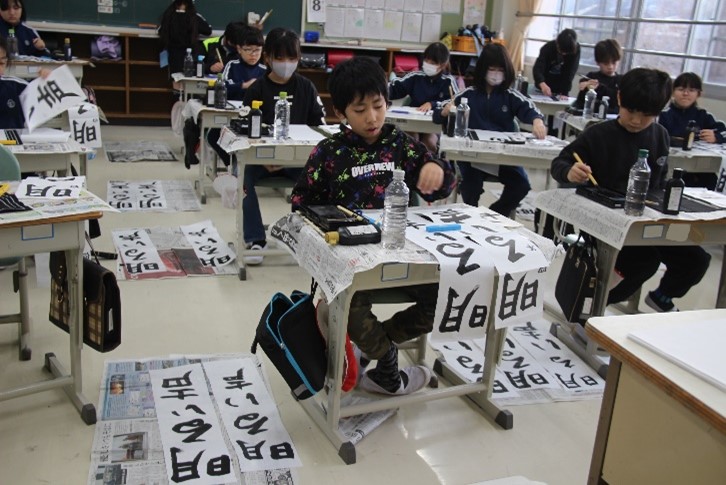 2026年1月8日 17時24分本日1、2時間目に書き初め大会が行われました。どの教室も静寂につつまれ、子どもたちは、上手に字を書こうと何度も手本を確認しながら、集中して書くことができました。2学期末から冬休みにかけて練習してきた成果を発揮することができたと思います。