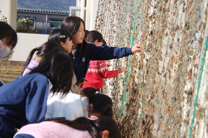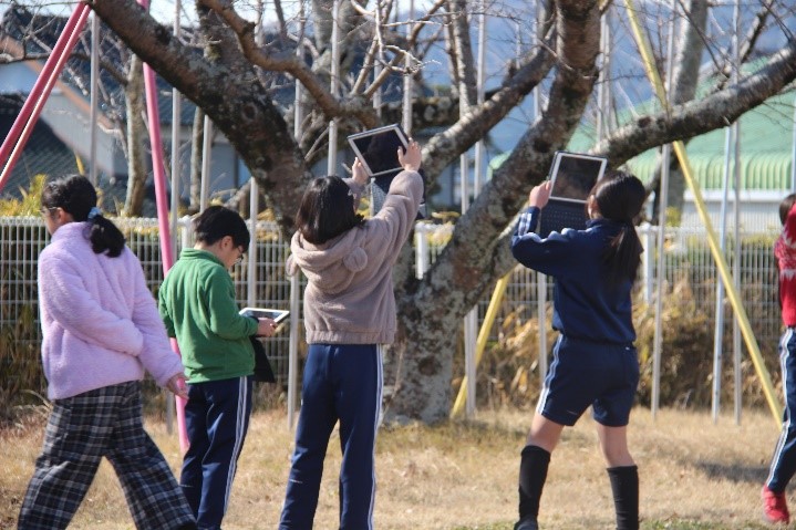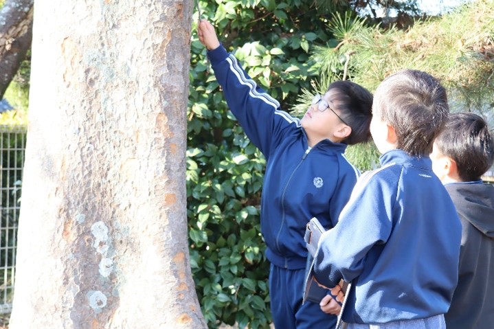 4年東組は、理科の授業で「あたたかさと生き物(冬)」の学習を行いました。校庭の桜の木の様子や花壇のツルレイシの様子を写真に撮りました。観察カードには、観察したことをもとに、葉や茎、実の様子が秋と比べてどのように違うか、絵や言葉でまとめました。