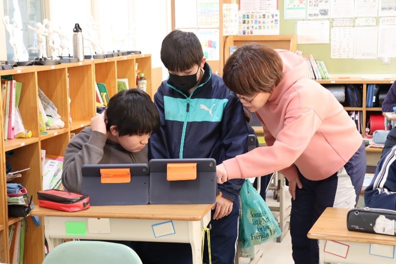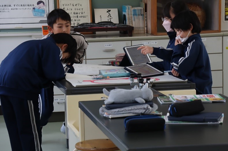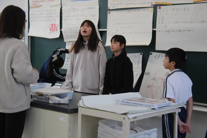 5年西組は、理科で「人のたんじょう」の授業を行いました。同じ疑問をもつ者同士で作ったグループごとに、調べ学習をした内容を絵や文章で分かりやすくまとめました。その後、次回の発表に向けて、発表練習を行いました。