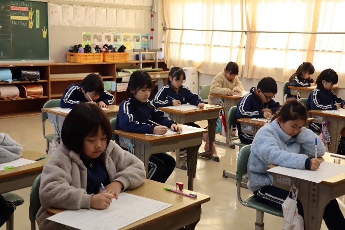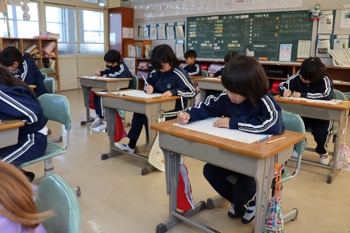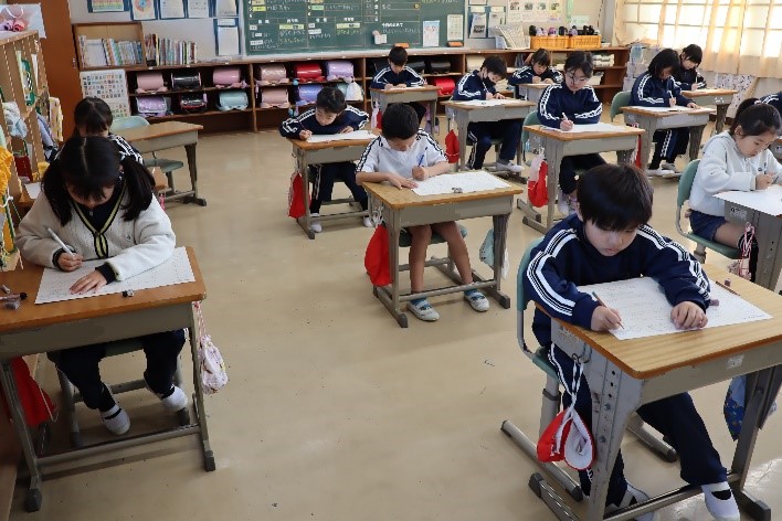 2年生は、算数の授業で「2年生まとめテスト」を行いました。2年生で学習した「たし算・ひき算の筆算」や「かけ算」、「時こく」などの問題に取り組みました。このテストで、どのくらい2年生の学習が見についたのかを確認し、今後の勉強に役立てていってほしです。
