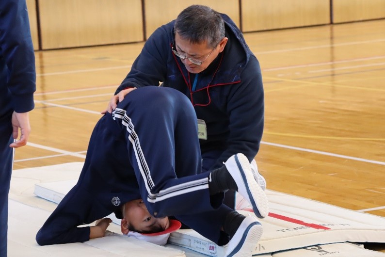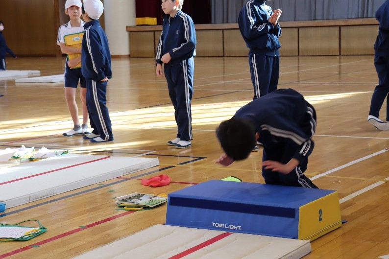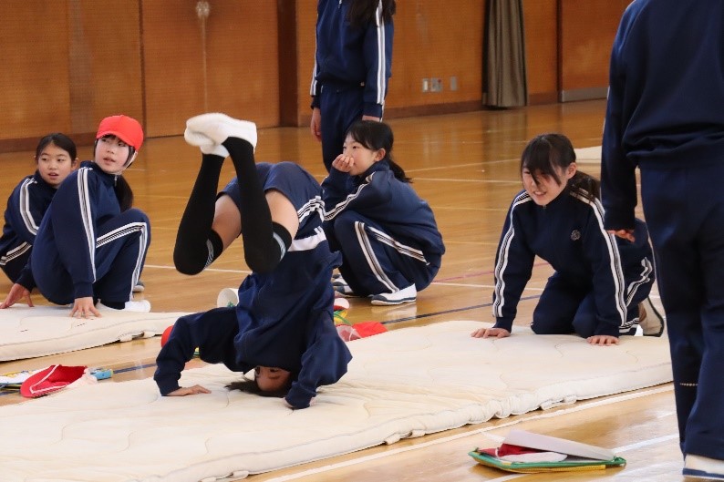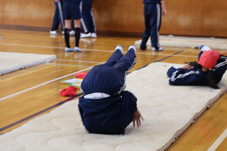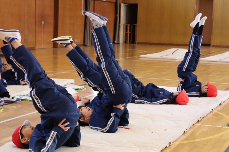 5年生は、体育の「マット運動」の授業を行いました。「レッツ・トライ!めざせ!マットマスター」という課題のもと、開脚後転やとび前転、側方倒立回転などの技に、膝を伸ばすことや脚をそろえることを意識しながら取り組みました。練習を積み重ねる中で、できなかった技ができるようになり、子どもたちはとても喜んでいました。