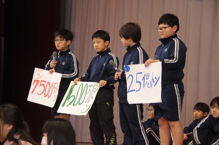 全校集会(4年生) 2026年1月23日 16時56分 本日、4年生が企画、運営する全校集会が行われました。4年生がとぼねで学習した「SDGs」を題材にしたクイズを考え、全校でそれらの問題に楽しく答えていました。今年度最後の集会も、笑顔あふれる会になりました。