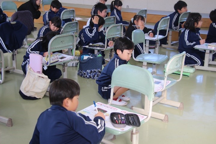 3年西組は、英語の授業で「What’s this?」の学習を行いました。クイズ大会をやり、「What’s this?」を使ってALTや友だちにクイズを出しました。子どもたちは、今まで習った英語を使いながら、さまざまなクイズを考え、楽しく活動しました。