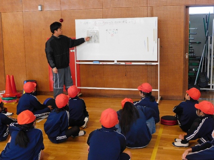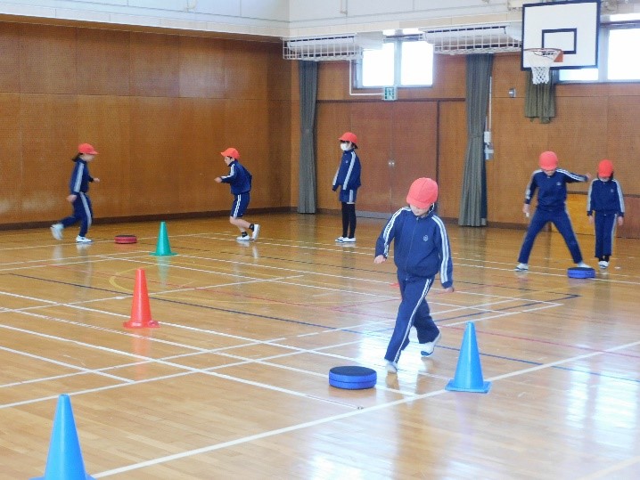 4年西組は、体育の授業で「フットホッケー」の学習を行いました。「空いたスペースを活かした攻め方を練習しよう」という学習課題のもと、チームで話し合いながら練習をしました。敵チームを意識した攻め方を学び、ゲームで活かそうとする姿が見られました。