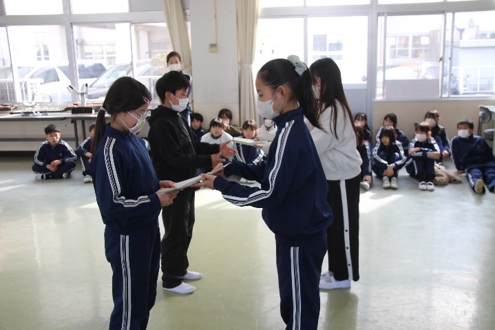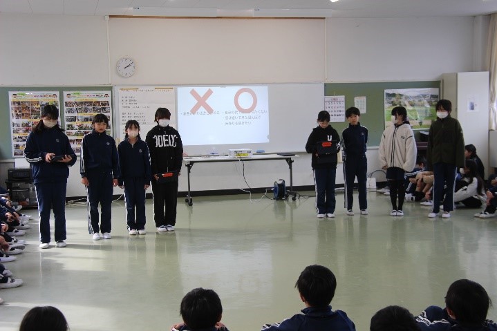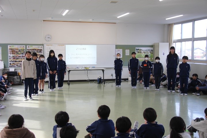 2026年2月5日 16時07分本日、5年生がとぼねの米づくりの学習で学んだことを、4年生に伝える会を開きました。お米を育てた経験から学んだことや調べて分かったことなどを劇やタブレットでまとめ、4年生に発表しました。子どもたちの様子から、来年度「米」について学ぶ4年生の子に自分たちの学びを少しでも伝えたいという気持ちが伝わってきました。5年生の発表を聞く4年生の表情も真剣で、来年度の米作りをがんばろうという意欲がもてたようでした。