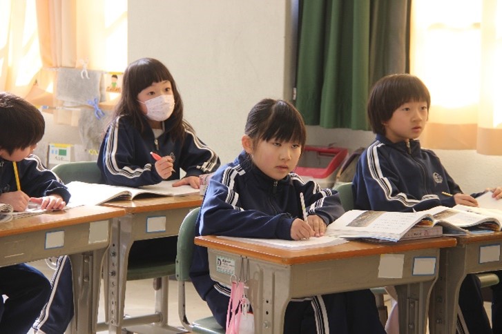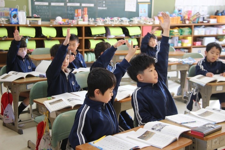 1年西組は、国語の授業で「子どもをまもるどうぶつたち」の学習を行いました。オオアリクイの親がどのように子どもを守っているかについてみんなで話し合いました。そして、親子の体の模様がつながるようにすることで子どもを守っていることを見つけました。