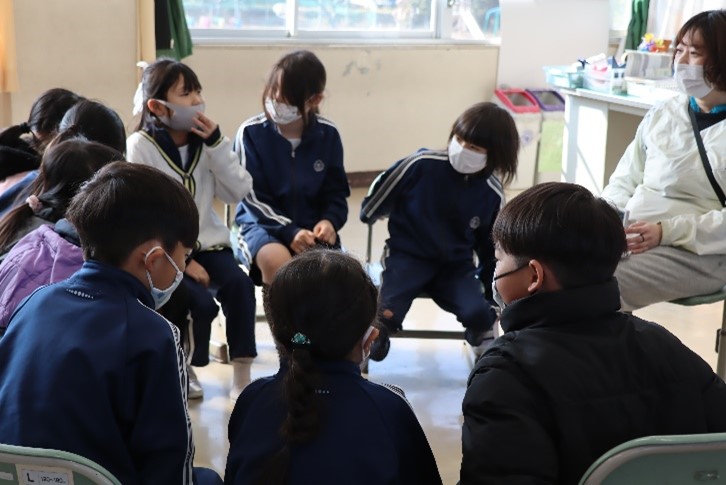 2年東組は、国語の授業で「ことばあそびを楽しもう」の学習を行いました。みんなで輪になってしりとりを行いながら、楽しく身の回りの言葉について学びました。