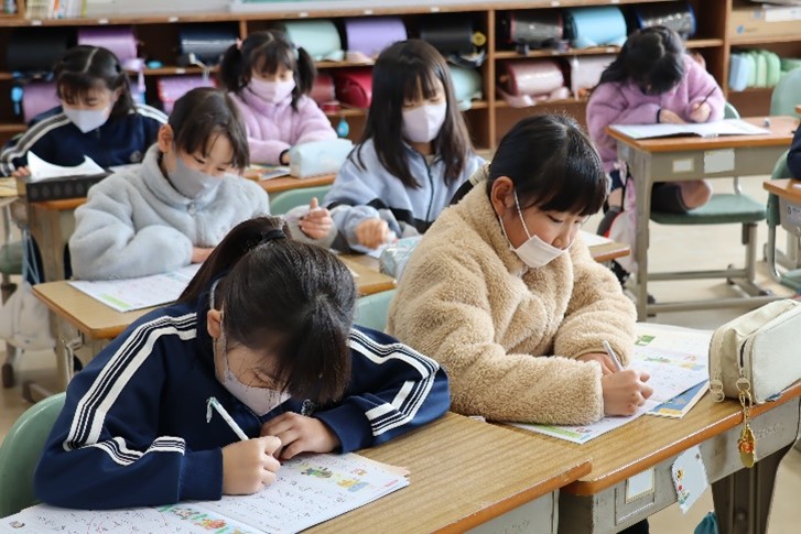 2年西組は、国語の授業で「書き方」の学習を行いました。「ひらがなの書き方に気をつけて『いろは歌』を書こう」の課題のもと、文字が小さくなりすぎないように気をつけながら、ていねいに文字を書くことができました。