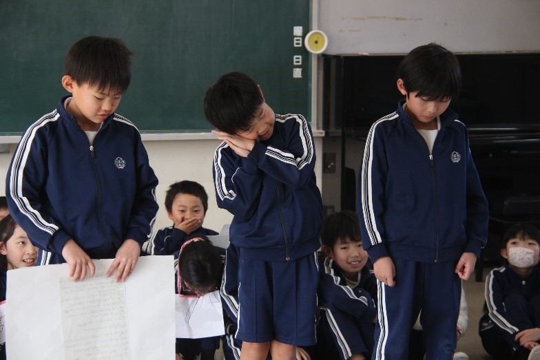 3年西組は、とぼねで「感謝の会」の準備と練習を行いました。明日の感謝の会に向けて、イチゴの学習で学んだことをグループごとにまとめ、発表の練習を行いました。
