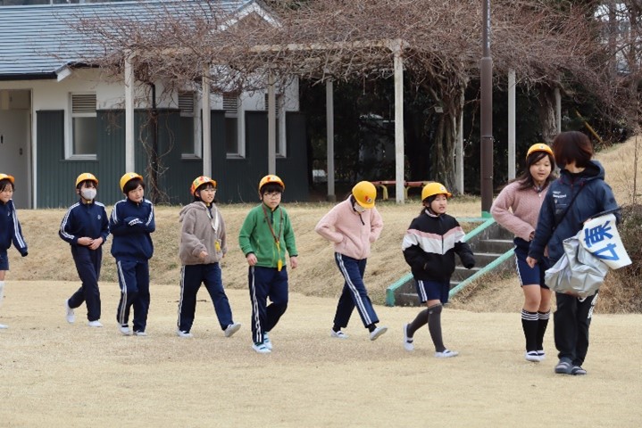 避難訓練は、子どもたちに予告なしで行われました。近くに教員がいない業間や昼の放課に地震が起きた時、自分たちでどのように安全に避難すると良いかを訓練しました。子どもたちは、自分で考えながら「お・は・し・も」をしっかりと守って避難することができました。また、不明者が出た状況を想定した訓練も行われました。そして、校長先生から、緊急時の避難し方について、子どもたちと一つ一つ確認していただき、いざいうときは自分の命を守るための行動をとれることが大切であると話をしていただきました。
