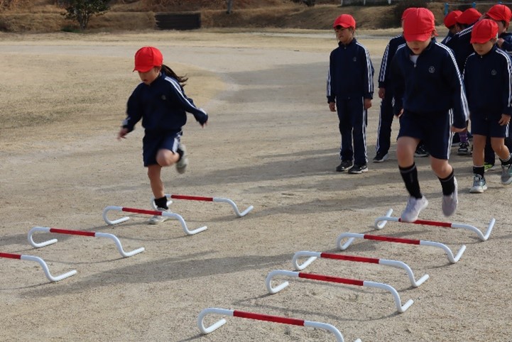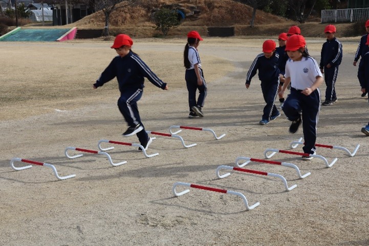 2年東組は、体育の授業で「ハードルあそび」の学習を行いました。リズムよくミニハードルを跳ぶにはどうしたらよいかを考えながら活動しました。これからの学習で、自分に合った間隔でリズムよく跳びながら走ることを学んでいきます。
