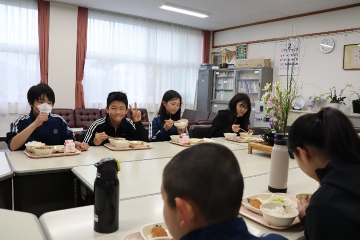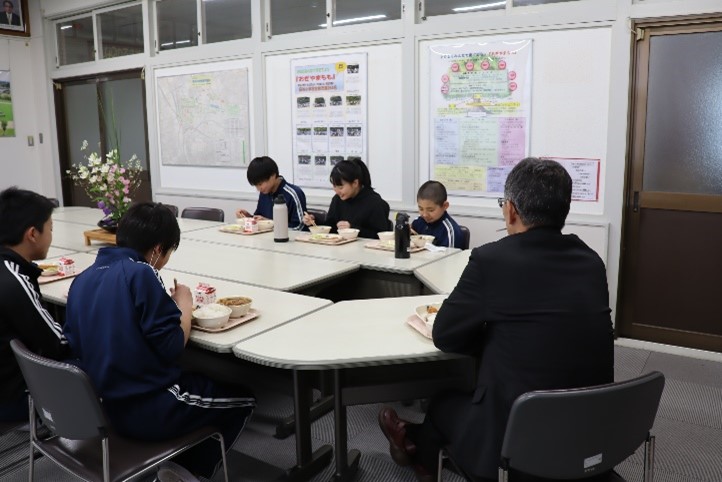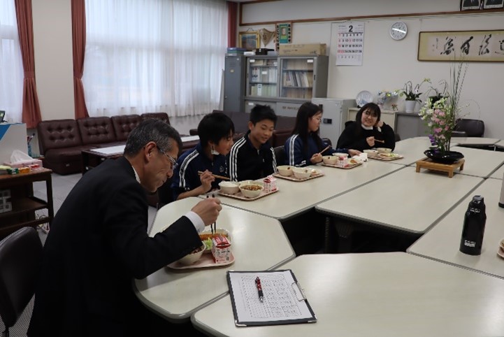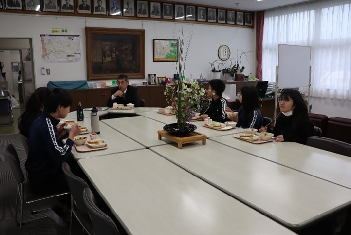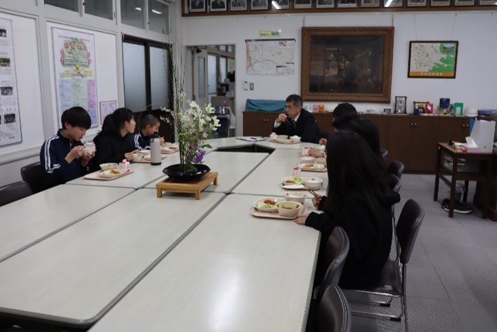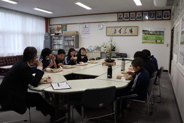 2026年2月25日 16時10分今日から、校長先生と6年生との会食会が始まりました。校長室で給食を食べながら、小学校の思い出や中学校で頑張りたいことなどを話しながら、楽しいひと時を過ごしました。今後、卒業までの間に、グループごとにこの会食会を行っていきます。