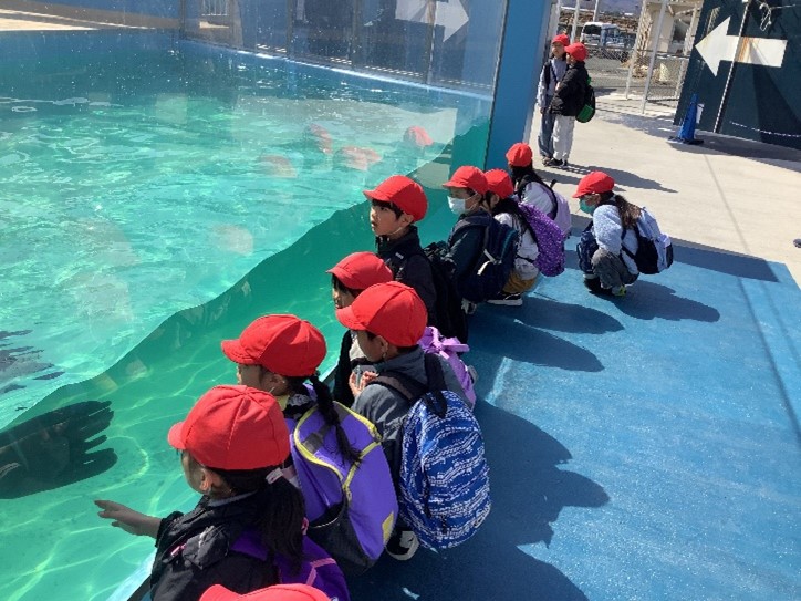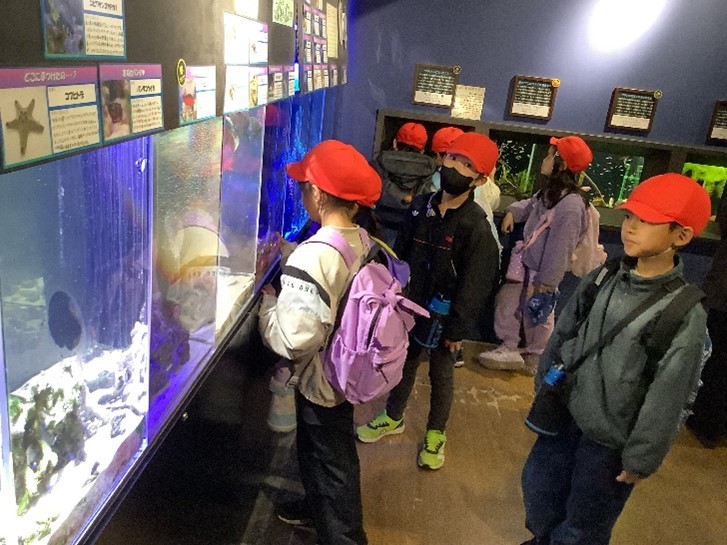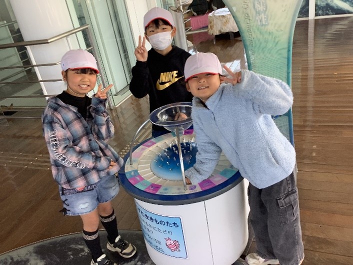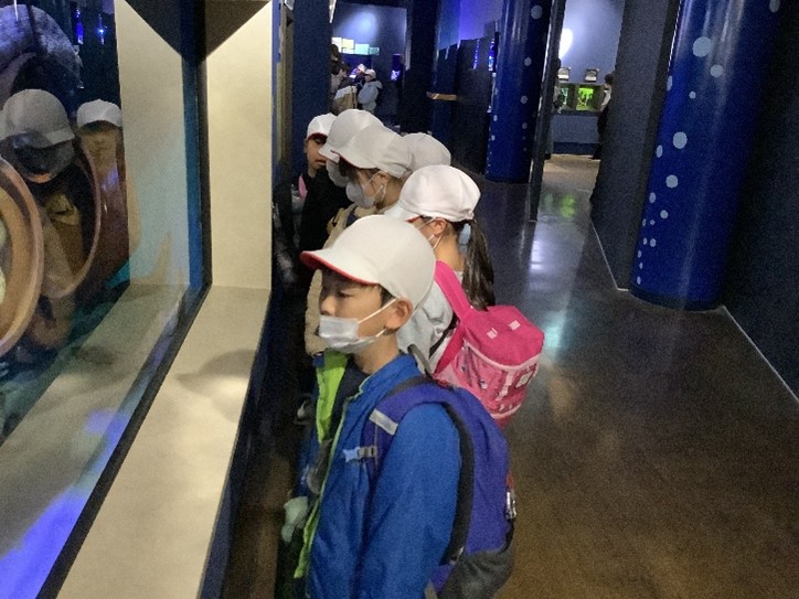 本日、2年生が校外学習で「生命の海科学館」と「竹島水族館」に出かけました。科学館では、グループに分かれて展示物を見学したり、サイエンスショーやシアターで「ニッポン列島 海中百景」を見たりして楽しみました。水族館では、深海魚や三河湾に生息する生物などを見学しました。子どもたちにとって、大満足の一日となりました。