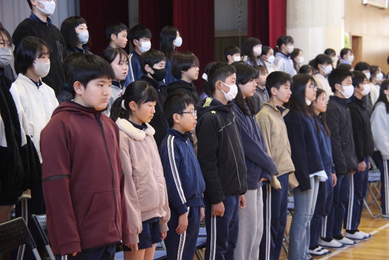 本日も卒業式に向けて、卒業生練習と在校生練習が行われました。卒業生練習では、入場から卒業証書授与、呼びかけや式歌練習、退場練習など、一通りの流れを練習しました。在校生練習では、前回の反省を踏まえて、歌の練習やお別れの言葉の練習を行いました。卒業式に向けて、荻谷っ子みんなで素晴らしい卒業式を創り上げるために、順調に練習が進んでいます。