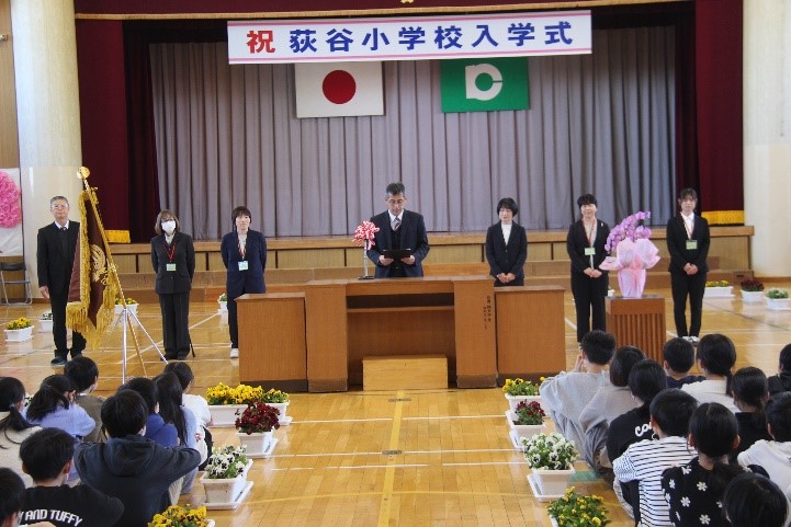 春の陽気を感じる中、新任式、入学式、始業式が行われました。今年度は、新1年生40名が加わり、全校児童246名の学校生活がスタートしました。入学式では、自分の名前が呼ばれると1年生は大きな声で返事をし、校長先生のお話や6年代表の子のお話をしっかりと聞くなど、立派な姿で入学式を行うことができました。進級した2年生から6年生の子どもたちは、新しい友達と新しい先生との出会いにわくわくドキドキの学校生活がスタートしました。