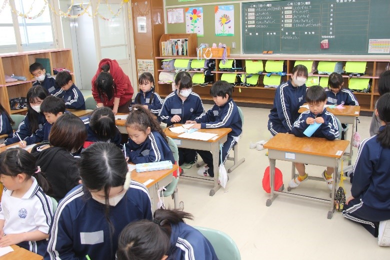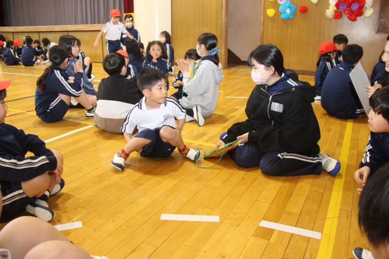 2026年4月10日 19時35分本日、みどりのチームの顔合わせがありました。学級タイムに1年生と6年生が顔合わせをし、自己紹介や名札づくりをしました。そして、3時間目に全校で顔合わせを行いました。チームごとに全員が自己紹介をした後、班長である6年生が考えたレクリエーションを行って、楽しく過ごしました。下級生の面倒を見ながら関わり合う6年生の姿から、最高学年の自覚を感じました。今年度も行事や掃除などの活動を通して、異学年とのつながりを深めていきます。