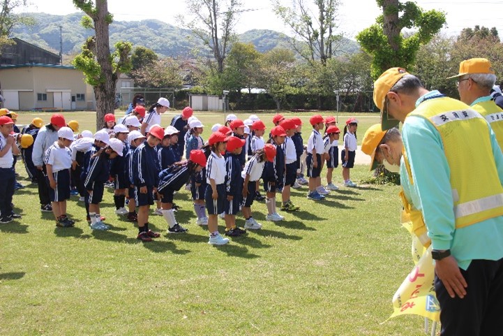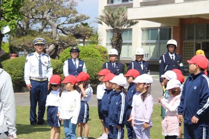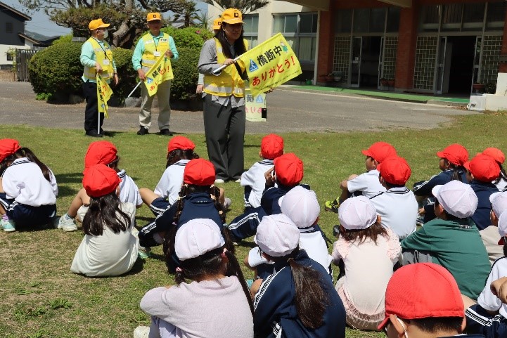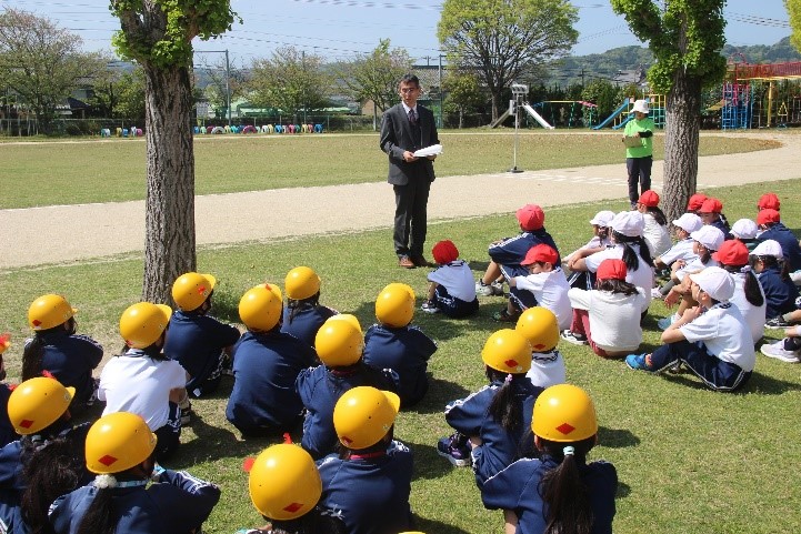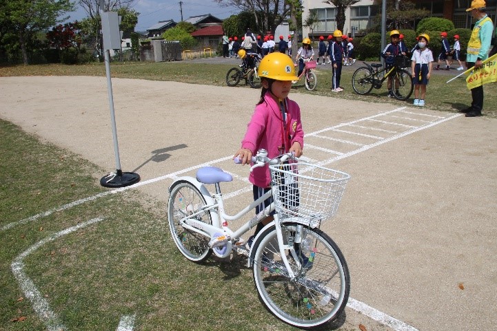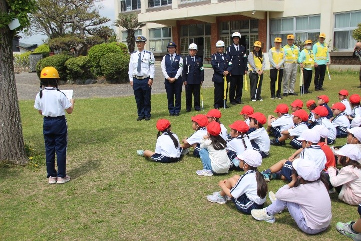 2026年4月14日 19時53分 本日、1・3年生とあしの芽学級が交通安全教室を行いました。警察署の方や交通指導員の方、防災安全課、地域安全ステーションの方が指導をしてくださいました。
