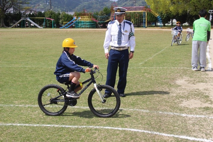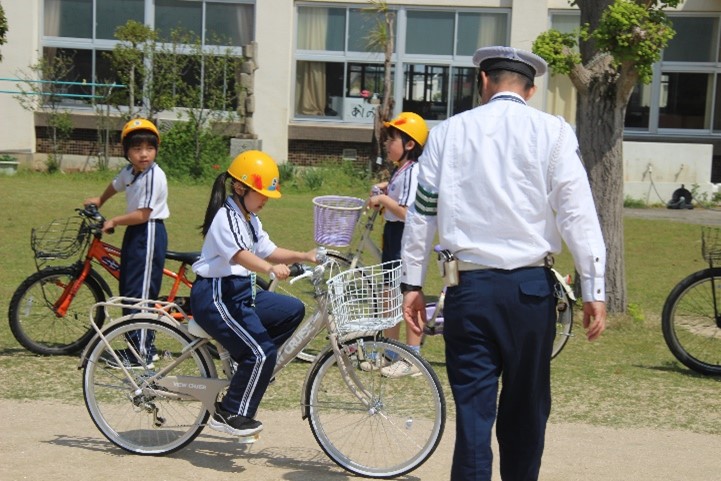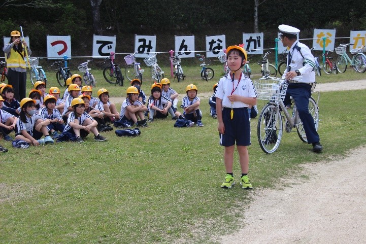 本日、1・3年生とあしの芽学級が交通安全教室を行いました。警察署の方や交通指導員の方、防災安全課、地域安全ステーションの方が指導をしてくださいました。