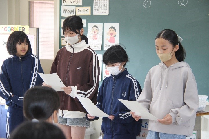 6年西組は、英語の「This is me!」の授業を行いました。数字の読み方や発音練習をし、みんなの前で発表しました。また、映像を見て、好きなスポーツはどれかなどの質問に答えました。これらの学習をもとに、自分の好きなものや宝物を英語で紹介できるようにしていきます。